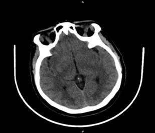 The patient was transferred to the Surgical Intensive Care Unit (SICU) for further management. A CT brain scan (Fig. 1) was performed, which revealed:
