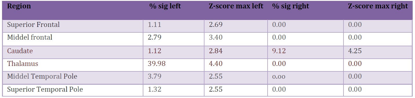 Table 1: ROI Atlas Analysis (AAL Atlas).