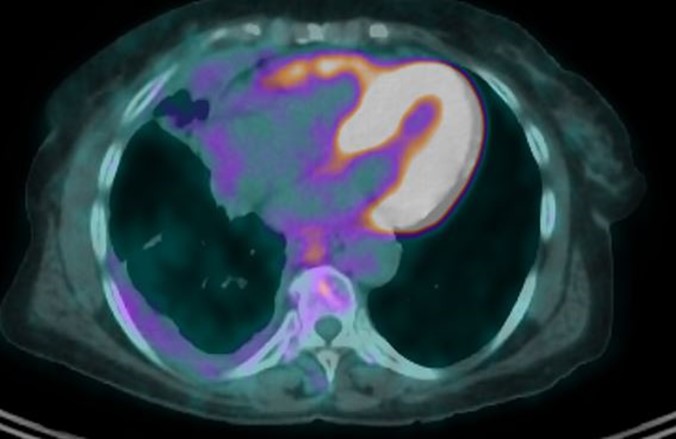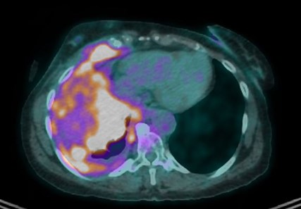 The PET-CT (Fig. 1) and pelvic MRI confirmed the thoracic and local extension without any distant, abdominal and pelvic localizations. Based on the imaging the primary diagnostic hypothesis was of a soft tissue sarcoma of the right thoracic wall with the differential diagnosis of a neglected mesothelioma.